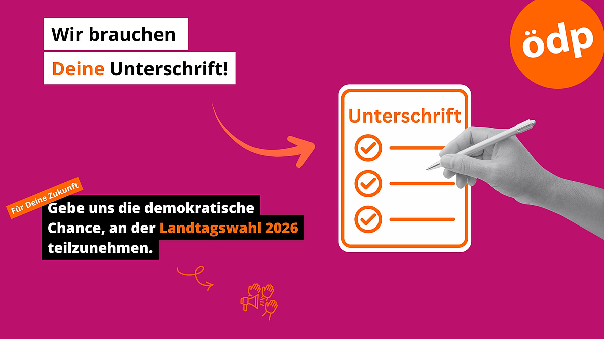 Teilnahme zur Landtagswahl am 22.03.2026: Wie können Sie der ÖDP helfen? Der Landtag wird über Landeslisten und mit Wahlkreiskandidaten gewählt. Wir benötigen für die Landesliste 2080 Unterstützungsunterschriften. In einigen Wahlkreisen werden wir auch Direktkanidatinnen bzw. -kandidaten aufstellen, diese benötigen 125 Unterstützungsunterschriften. Bitte beachten: Bei jeder Wahl darf man nur einen Direktkandidaten und eine Landesliste für eine Partei unterstützen. Drucken sie es bitte aus und tragen Sie Ihre Anschrift, Ihr Geburtsdatum, den Ort und das Datum leserlich ein. Erst durch Ihre Unterschrift wird das Dokument gültig. Danach senden Sie uns das Dokument zu. Den Rest erledigen wir gern.